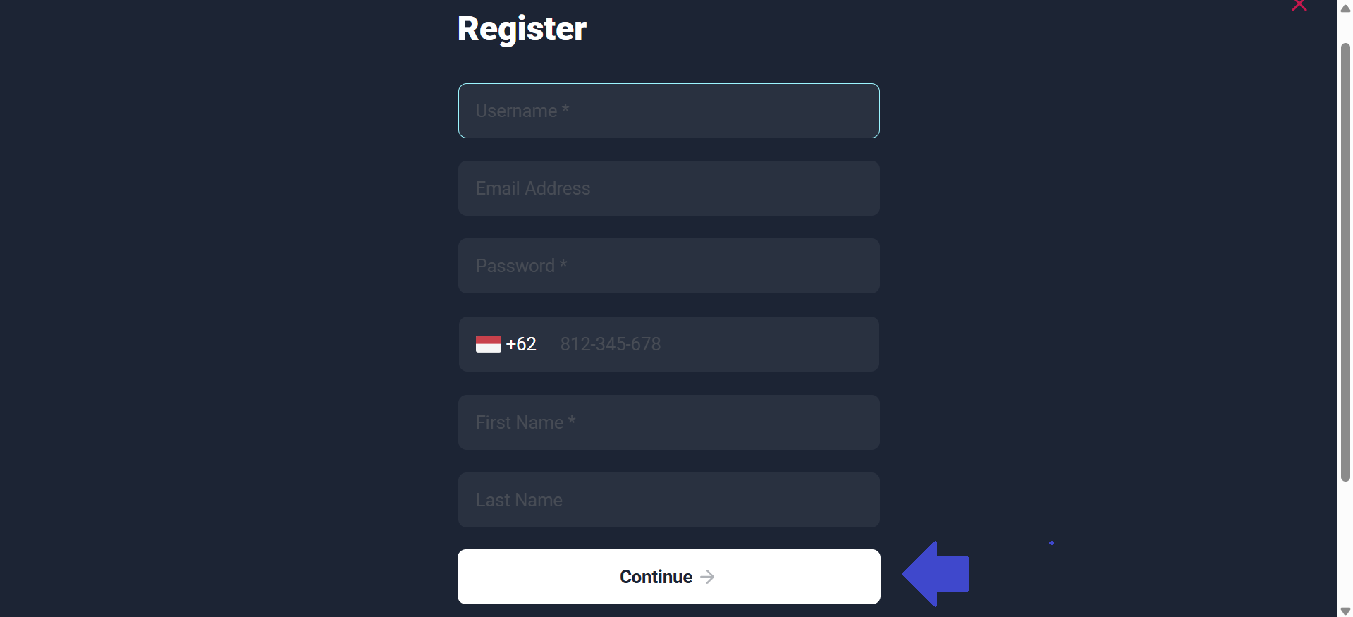 3. Anda dapat mengisi form yang telah disediakan dengan data pribadi anda. Setelah selesai anda dapat mengklik tombol “Continue” agar dapat diproses.